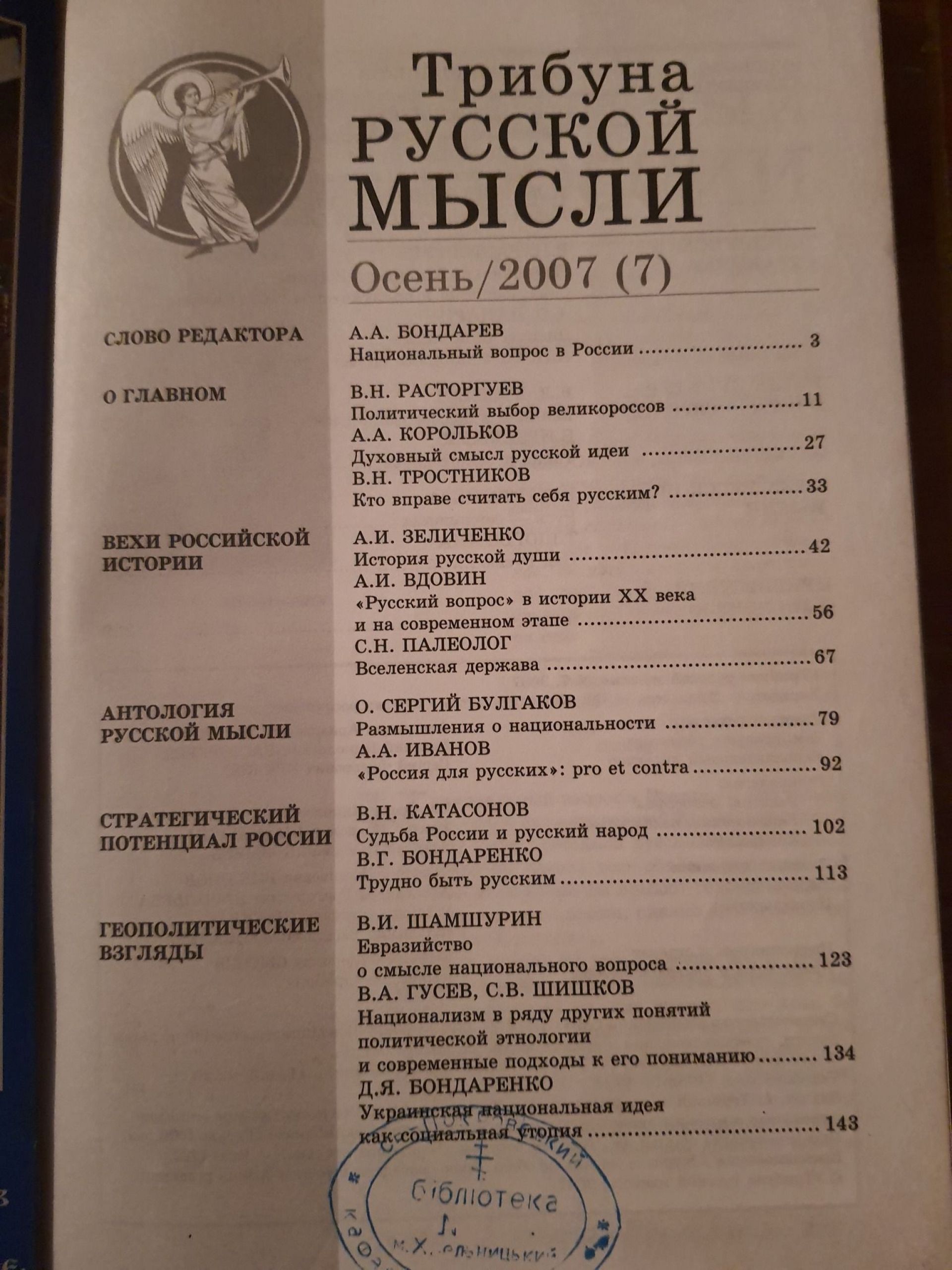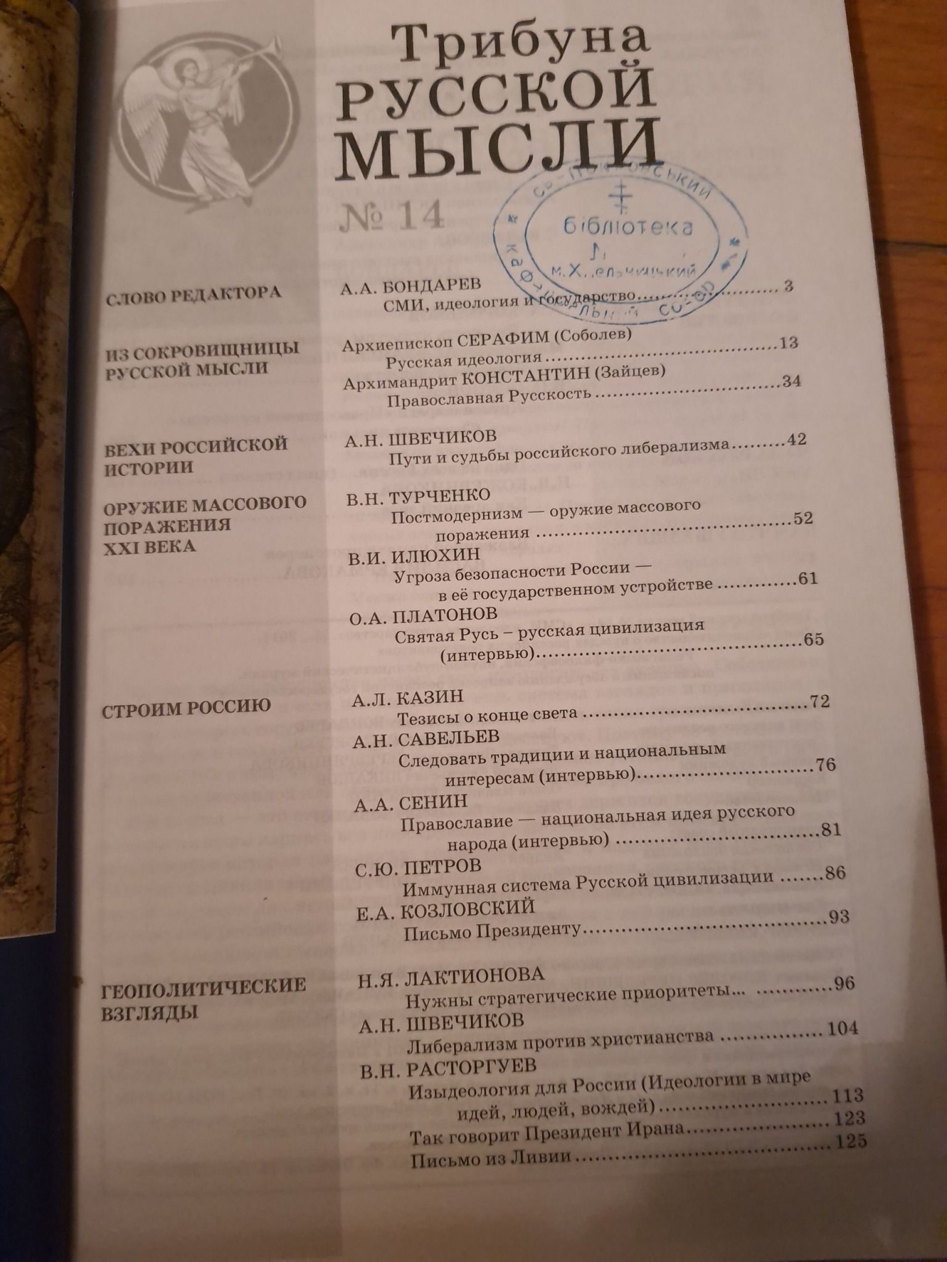 З-поміж усього пропагандистський посібник “О россии” Ільїна, “россия перед вторым пришествием”, “русская идеология”, вісник “Трибуна русской мысли”, CD-диск, підписаний “Мы — русские”, заповіт російського імператора Олександра ІІІ та дуже багато ідеологічних газет, статей та журналів.