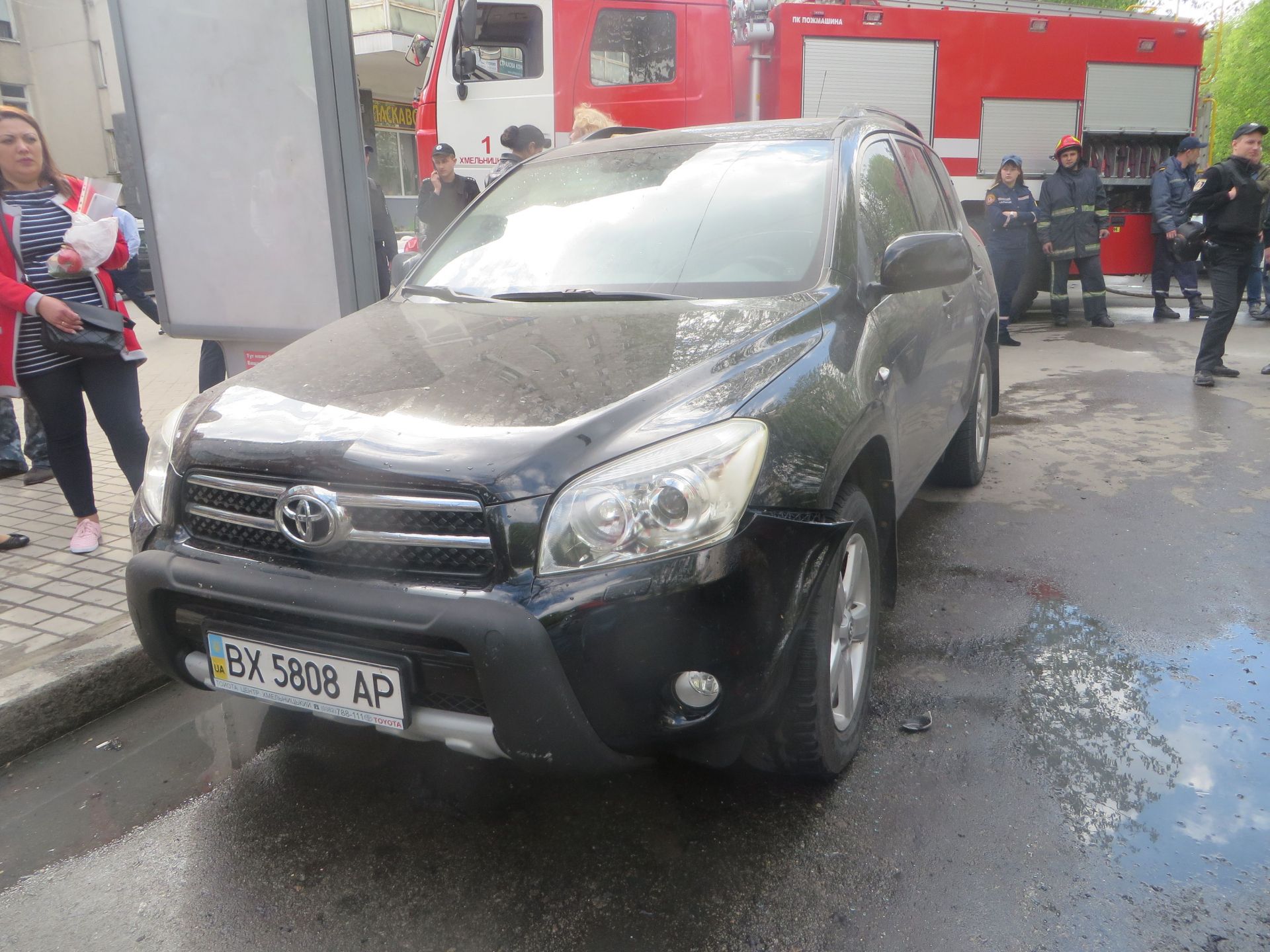 Вогнем пошкодило автомобіль "Toyota RAV4", який був припарковний за 1,5 метра від "Chevrolet Lacetti". В позашляховика деформовнае дзеркало заднього виду і бампер.