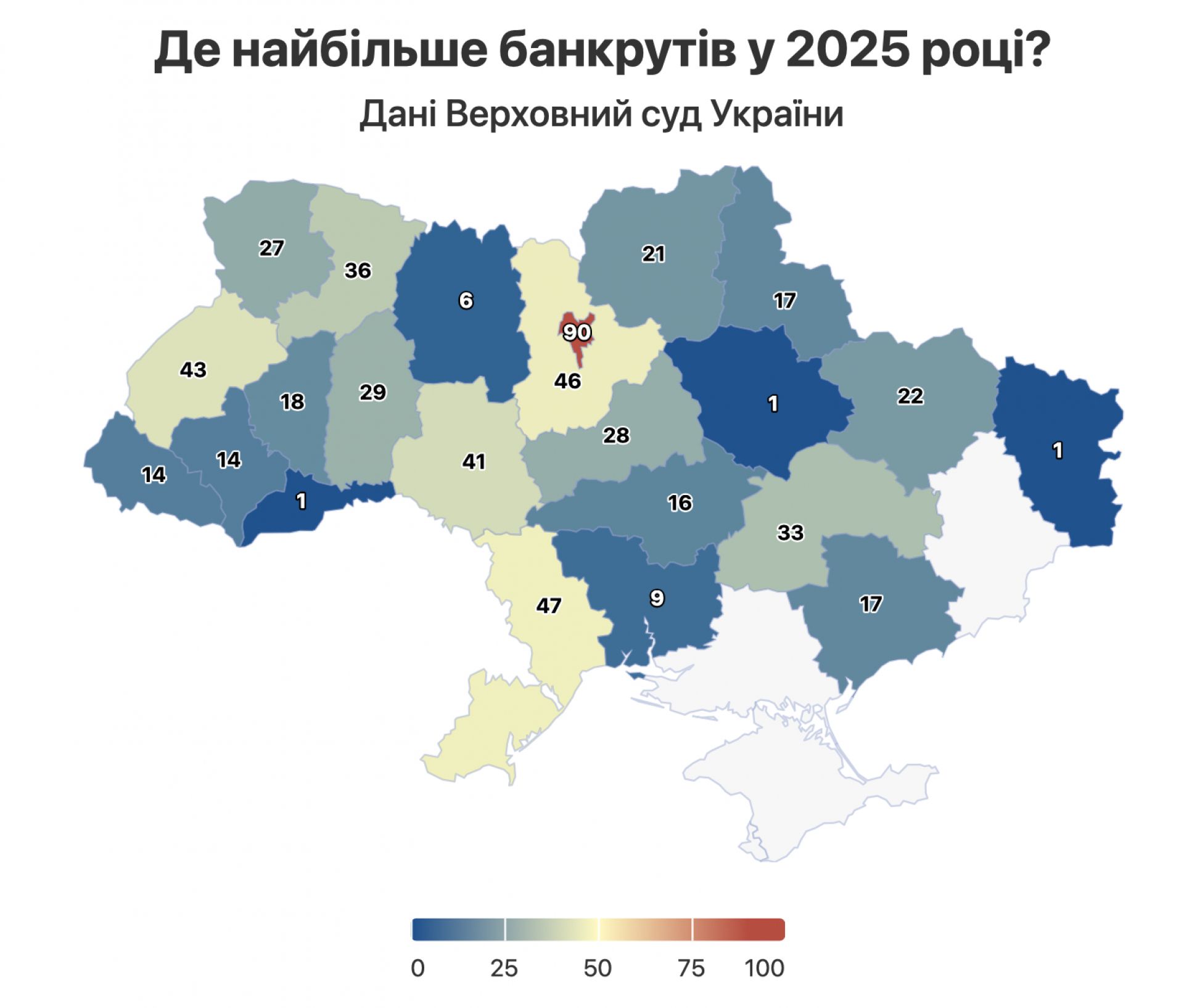 За останні п’ять років понад 2,9 тисячі українців скористалися процедурою банкрутства. Найбільше заяв надходить із Києва, Київської та Львівської областей. Але й Хмельниччина не залишилася осторонь: за перше півріччя 2025 року в області відкрили 29 справ про банкрутство. Для порівняння, у сусідніх областях цифри виглядають так: Вінницька — 41, Житомирська — 6, Рівненська — 36, Тернопільська — 18, Чернівецька — лише одна заява.