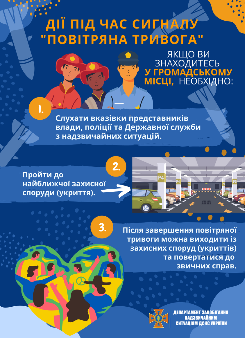 Також закликають не ігнорувати сигнали тривоги. Під час її оголошення потрібно негайно йти до найближчого укриття та не забувати про правило двох стін й двох виходів.