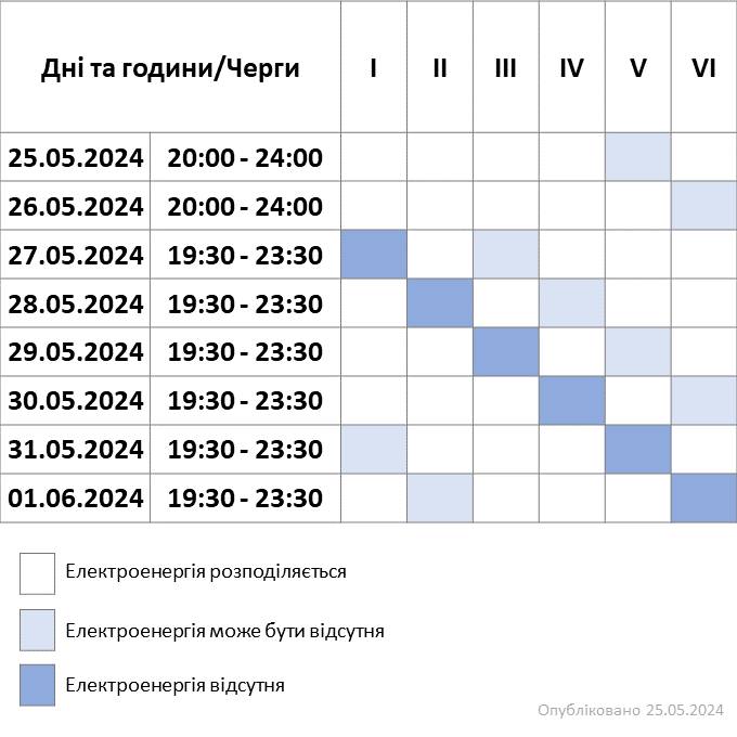 На Хмельниччині оновили графік погодинних відключень світла. Нові обмеження діють від сьогодні, 25 травня й до 1 червня.