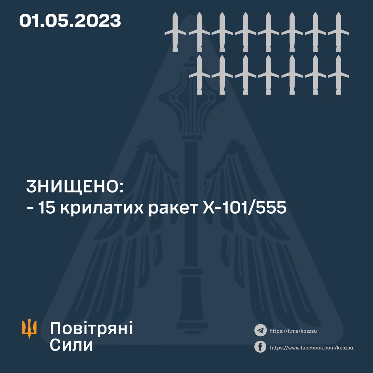 Цієї ночі Збройні Сили збили 15 із 18 крилатих ракет.
