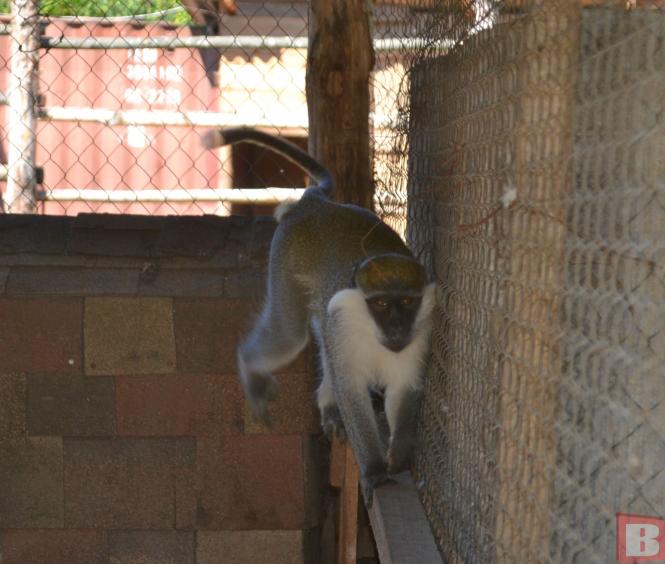 На момент нашого візиту в зоокутку саме була дитяча екскурсія. Увага малих відвідувачів була прикута саме до вольєру із зеленою мавпою Гаріком. Його історію ми вже розповідали на нашому сайті. Гаріка привезли із Харкова. Кілька місяців він живе у Хмельницькому районі. Після того, як тварина вкусила дівчинку, його намагались спіймати. Так Сергій Пальохін привіз у Гречани нового підопічного.
