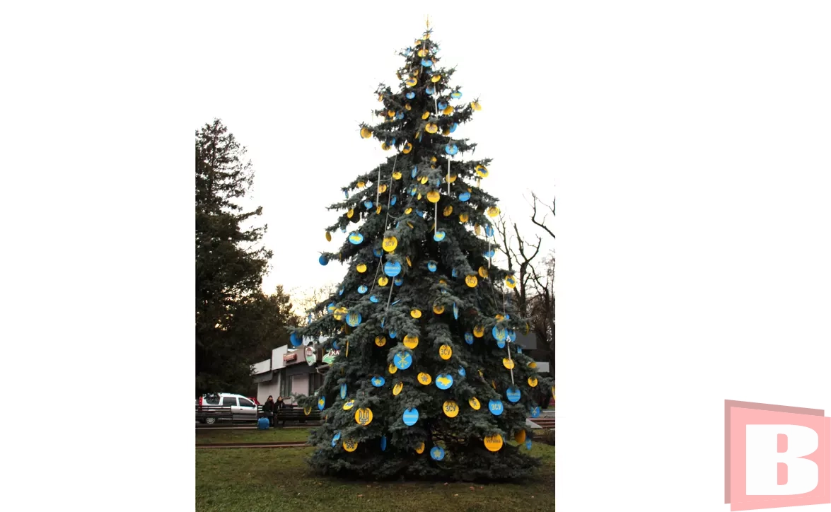 Додамо, що врешті штучної ялинки біля кінотеатру не ставили. Однак прикрасили в цьому місці кілька живих ялинок у синьо-жовтих кольорах.