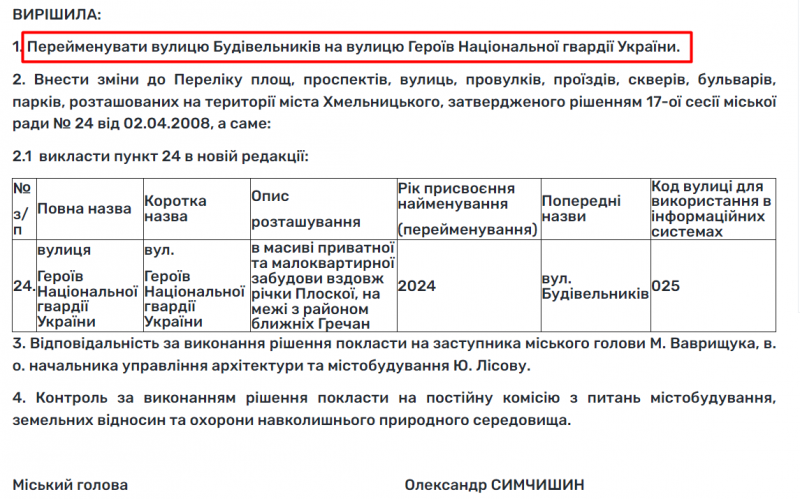 У Хмельницькому перейменували ще одну вулицю. За відповідний проєкт рішення депутати міськради проголосували на позачерговій сесії міськради сьогодні, 13 березня.