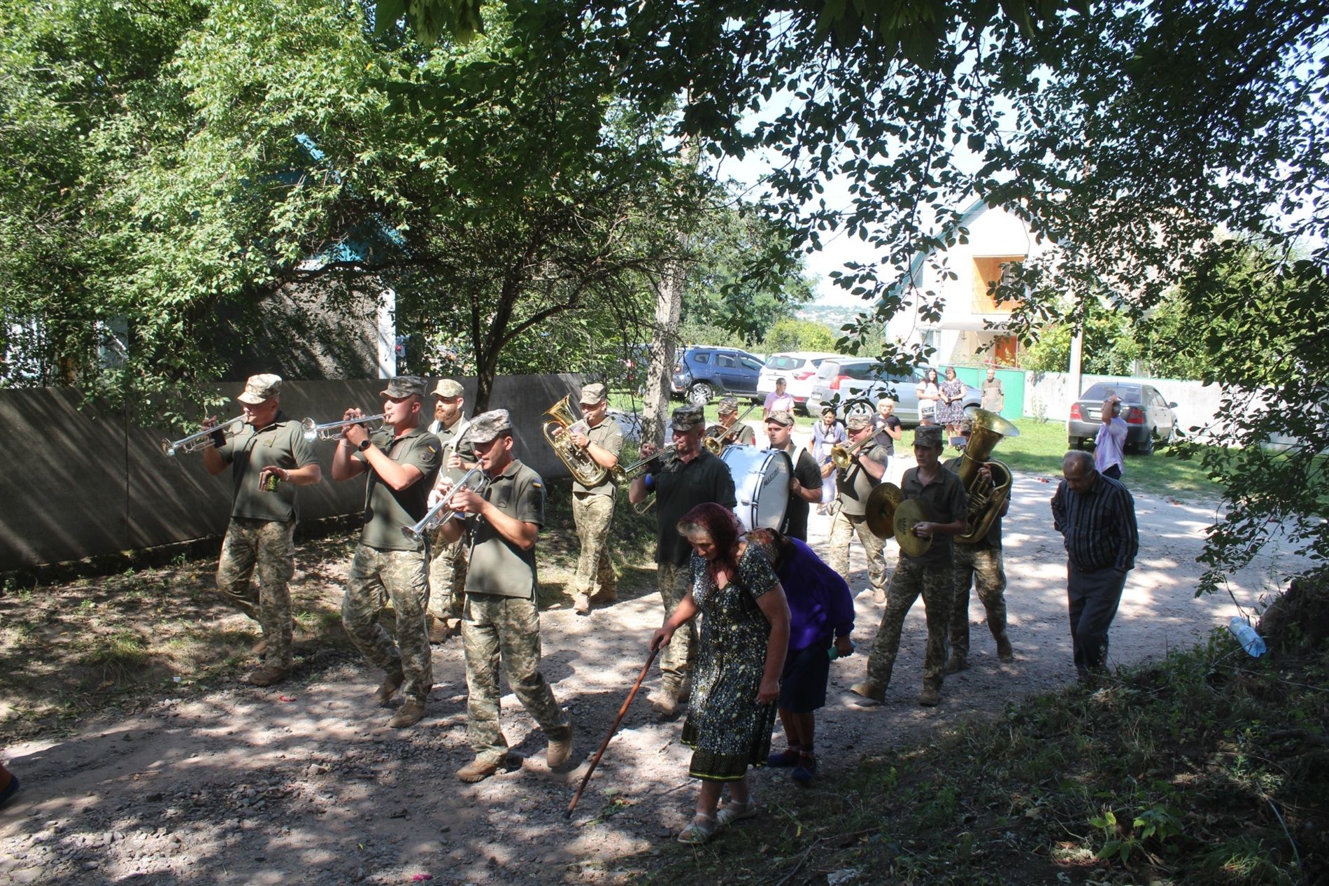 Від храму до кладовища труну з тілом Героя несли на руках солдати. Ходу супроводжував військовий оркестр. Найважчий момент — прощання, військовий салют. Від звуків пострілів скрикують рідні та ще більше починають ридати. “Війна забирає найкращих”, — шепчуть між собою люди.