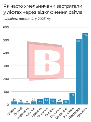 Як часто хмельничани застрягали в ліфтах через відключення світла протягом 2025-го року та в січні 2026-го – переглядайте далі, в інфографіці.