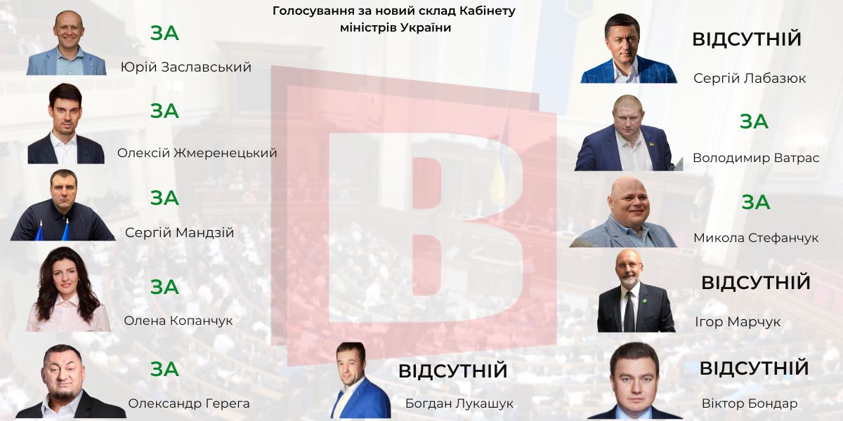 Щодо призначень: спершу парламентарі звільнили попереднього Прем’єр-міністра Дениса Шмигаля, який був на посаді з 2020 року. За його відставку вчора, 16 липня, проголосували 242 народні депутати. Уже сьогодні, 17 липня, в Раді відбулися нові призначення. Відтак Шмигаля на посаді замінила Юлія Свириденко, яка була віцепрем'єркою і міністеркою економіки. «ЗА» її призначення проголосували 262 парламентарі. Після взялися за перезавантаження всього складу Кабміну. Щоправда, значна частина міністрів залишилася в Уряді, однак уже на інших посадах. Отже, наразі оновлений склад Кабміну виглядає так: