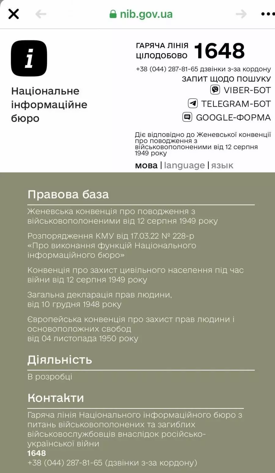 Ще одна офіційна структура — Об'єднаний центр із пошуку та звільнення полонених (+38 067 650 83 32; +38 098 087 36 01). Сюди варто звертатися, якщо ви вважаєте, що людина потрапила в полон.