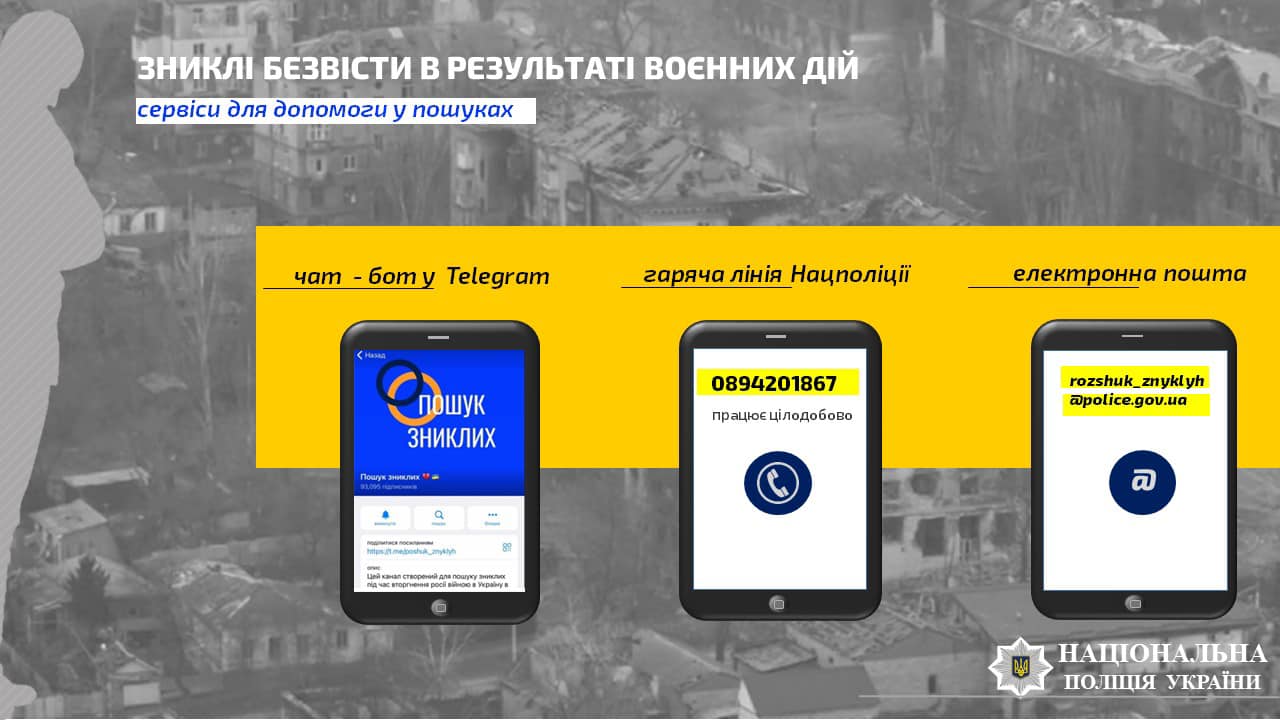 Для пошуку зниклих людей Міністерство цифрової трансформації оприлюднило перелік сервісів у своєму Телеграмі