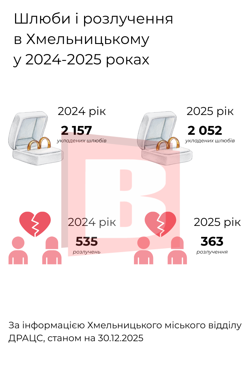 Як одружувалися і розлучалися хмельничани у 2025-му (ІНФОГРАФІКА)