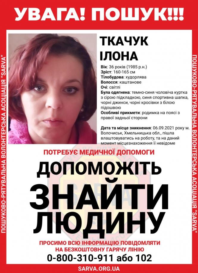 За інформацією волонтерів, жінку востаннє бачили у Волочиську 6 вересня. Вона пішла влаштовуватись на роботу. Після того її місце знаходження невідоме. В повідомленні також зазначають, що жінка потребує медичної допомоги.