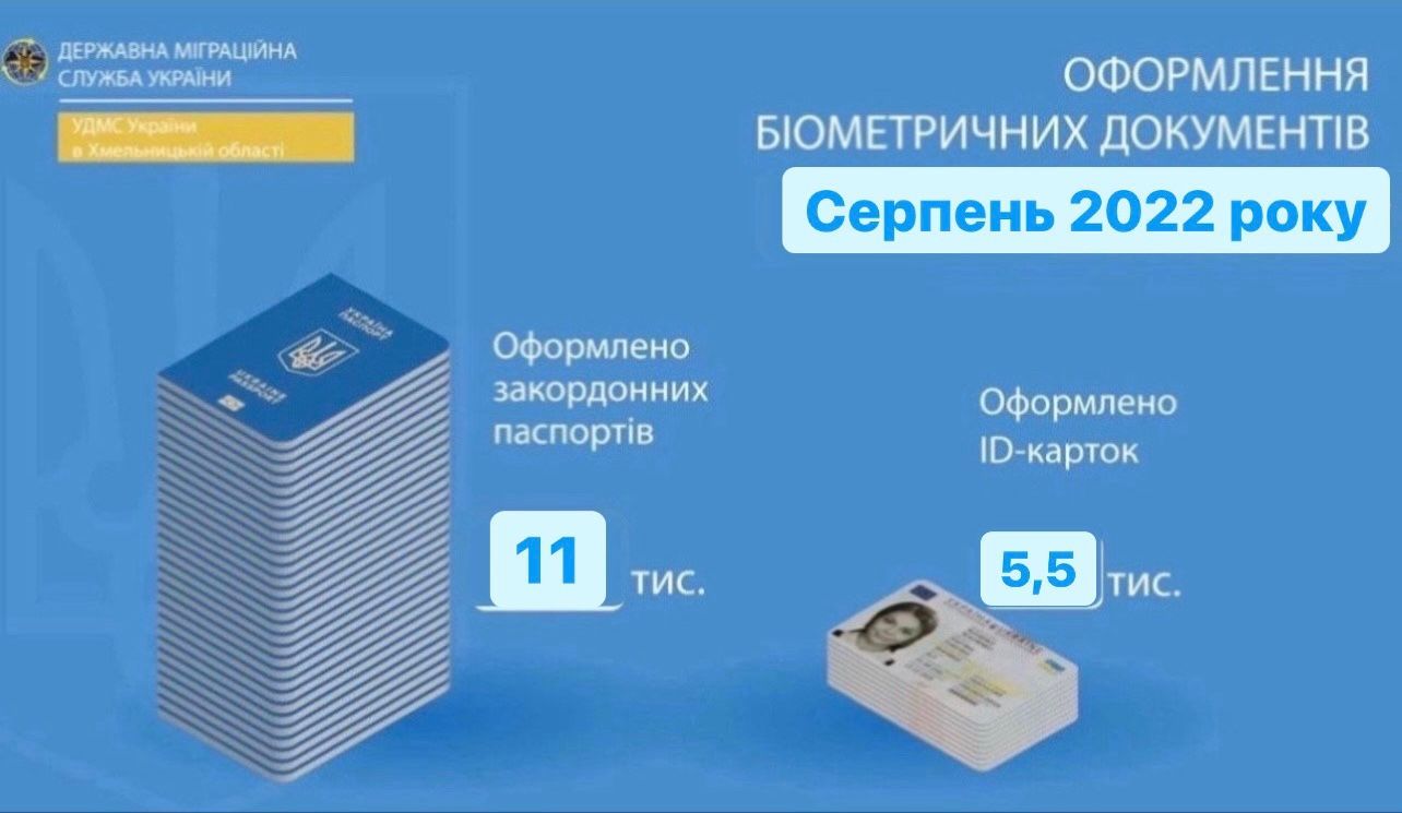 Упродовж серпня Міграційна служба Хмельниччини оформила 16,5 тисяч біометричних документів.