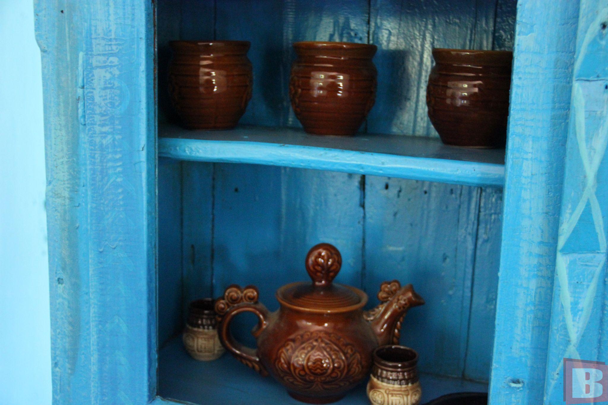 У сусідній кімнаті, яка поділена на дві невеликі, стоїть шафа із глечиками, ще одне ліжко і місце для створення глиняних виробів та знову ж таки експозиції із травами. До слова, їх не дарма стільки тут: адже регіон славиться гончарством і травництвом. Бакота була столицею пряного ремесла. Усі представлені експонати