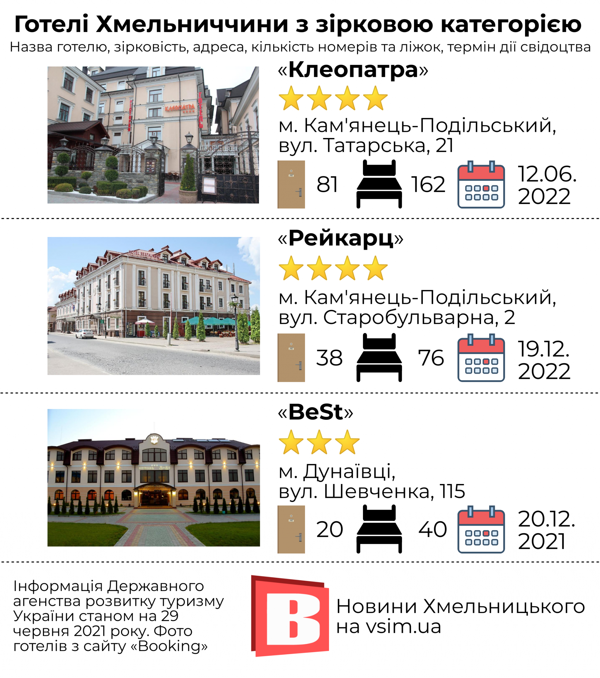 Скільки зірок мають готелі Хмельниччини (ІНФОГРАФІКА)
