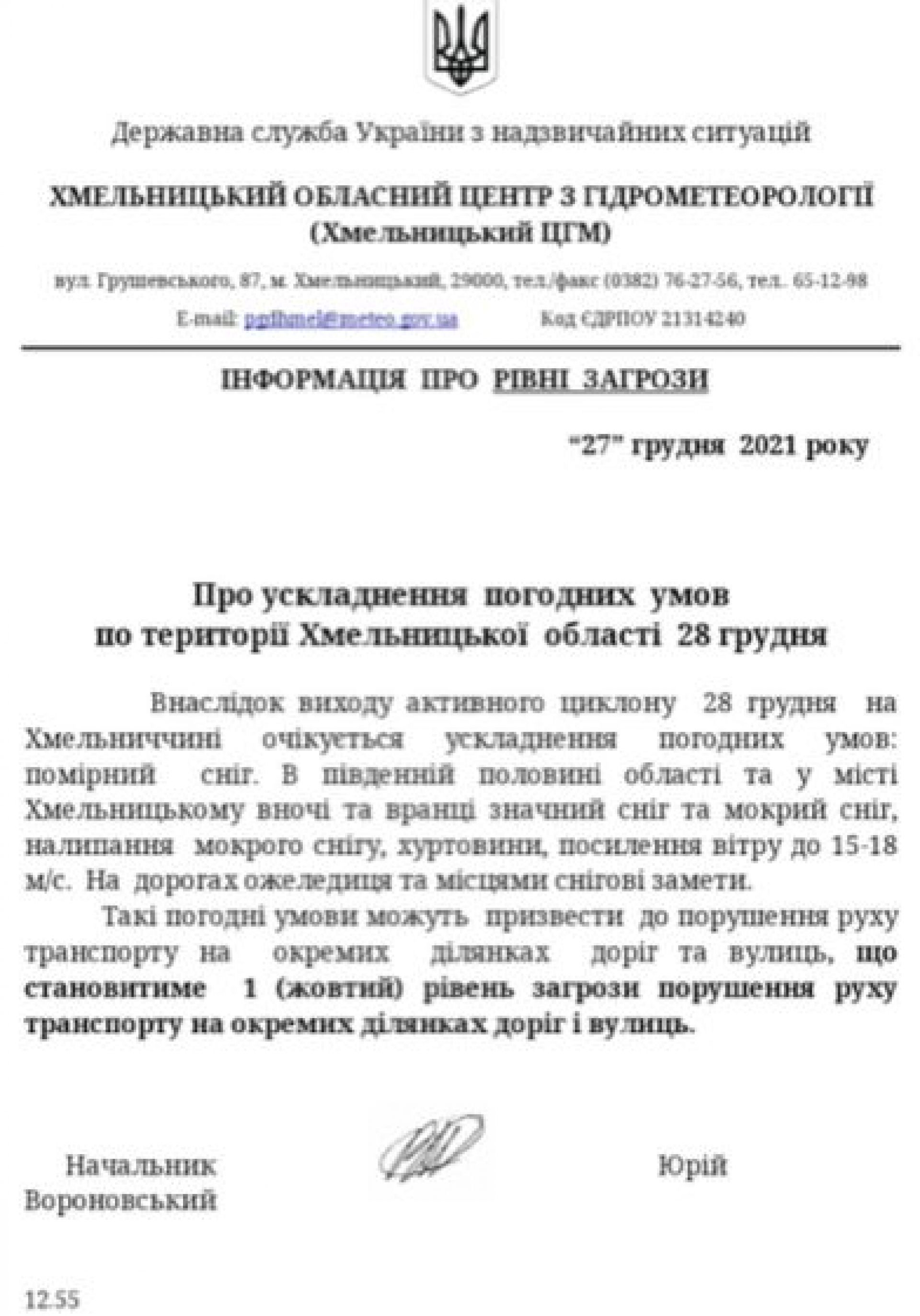 - Завтра, 28 грудня, у Хмельницькому й на території області прогнозують погіршення погодних умов.