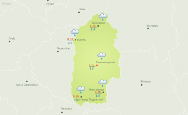 На Хмельниччині прогнозують похолодання. Початок та кінець тижня будуть дощовими, температура повітря знизиться до мінімальної позначки +3-5 градусів за Цельсієм. Попри холоднесу сонце ще визиратиме з-за хмар посеред тижня.