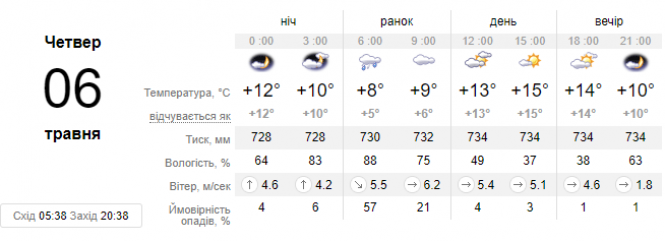 "Україна завтра, 6-го травня, опиниться в оточенні циклонів із чудернацькими назвами (карта) та атмосферних фронтів. Тому в багатьох областях пройдуть періодичні дощі і навіть погримлять грози...