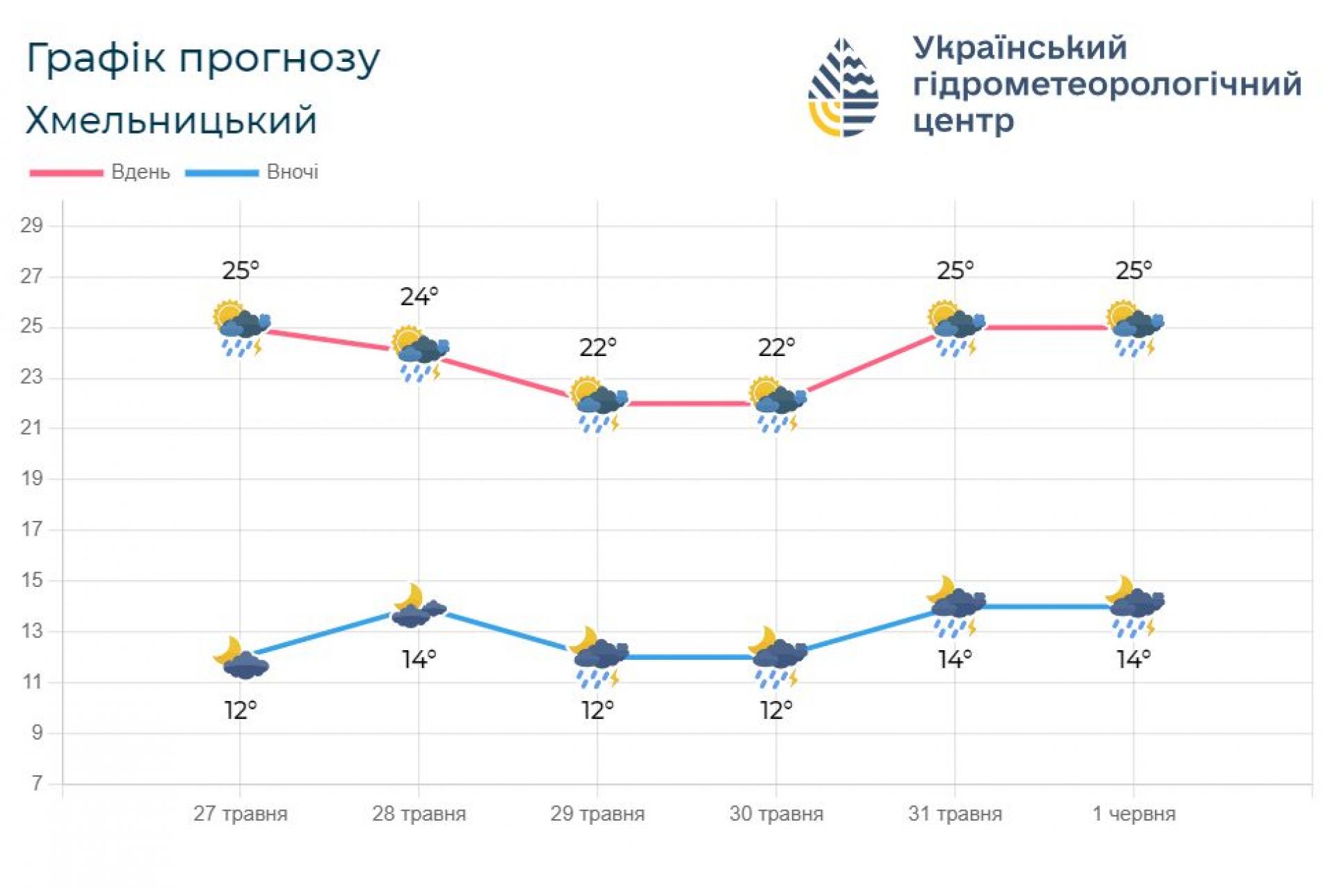 Впродовж тижня на Хмельниччині буде тепло, але водночас очікуються дощі та грози. Зміну погоди варто чекати вже сьогодні, 27 травня. Такий прогноз дали в регіональному центрі гідрометології.