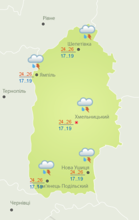 Загалом погода на Хмельниччині 24 липня виглядатиме так: