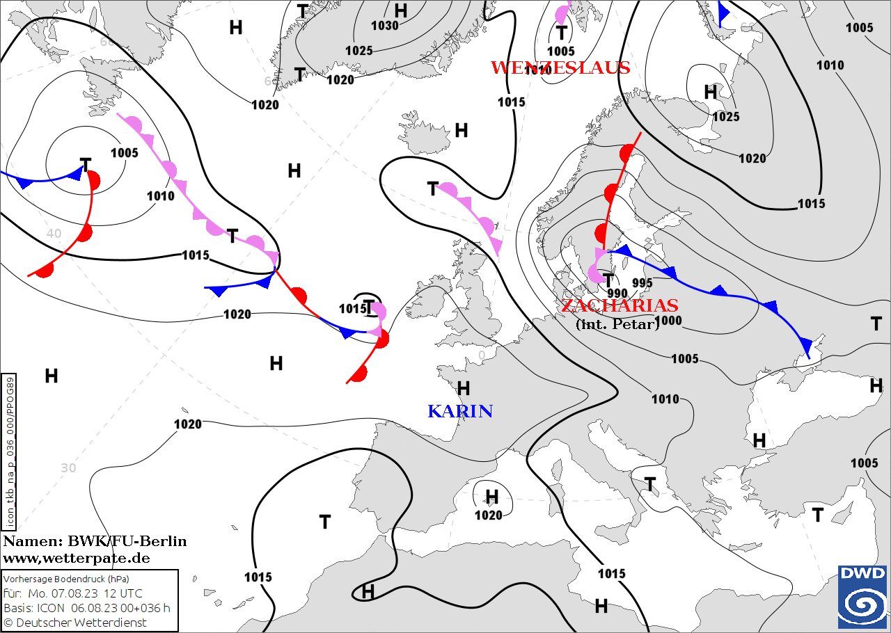 За прогнозом Наталки Діденко, дощі з грозами принесе у понеділок холодний атмосферний фронт, пов'язаний із балтійським циклоном Zacharias, в західні та північні області України, місцями в центральні та ввечері на Харківщину.