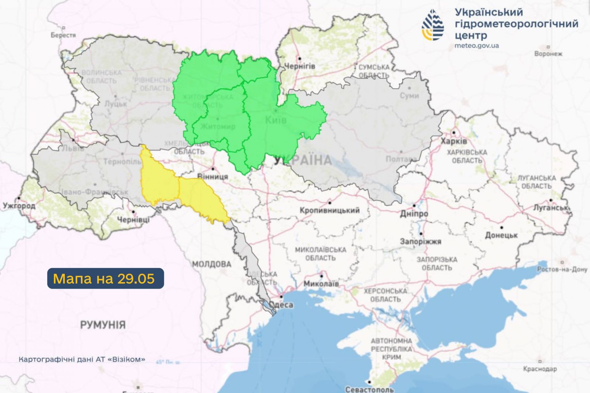 За прогнозами синоптиків, у період з 27 по 29 травня через очікувані значні дощі можливе суттєве підвищення рівнів води у лівих притоках Дністра, зокрема у Хмельницькій та Вінницькій областях. У зв’язку з цим існує загроза виходу води на заплаву. Це відповідає І рівню небезпеки – жовтому.