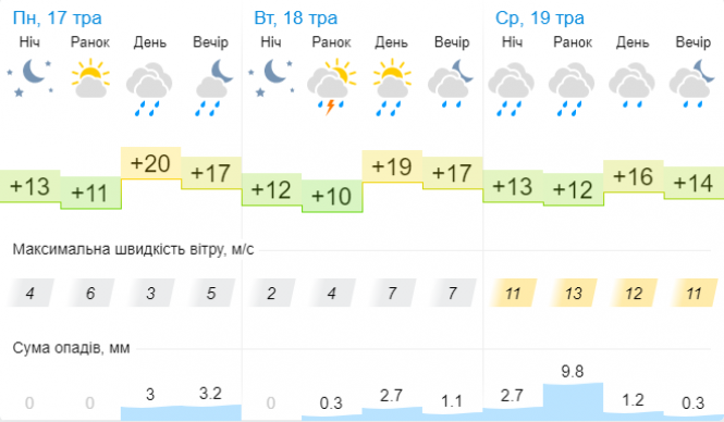 За даними Укргідрометцентру, в Хмельницькому завтра прогнозують від +9 до +19 градусів. Дощ.