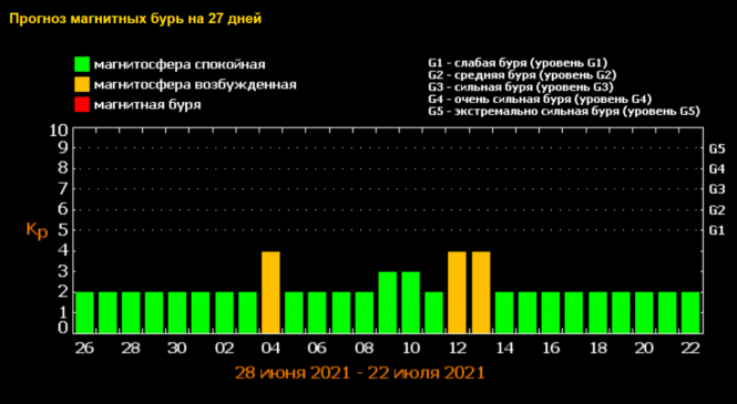 Перший сплеск буде в неділю 4 липня, другий варто очікувати у понеділок і вівторок 12-13 липня. Обидва магнітні сплески будуть середньої сили.