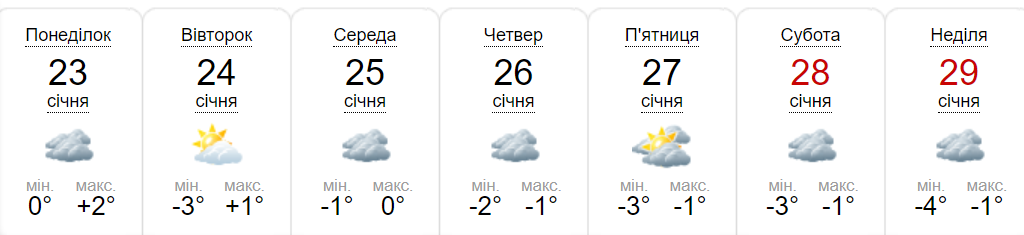 Морози та хмарність: прогноз погоди на тиждень з 23 по 29 січня