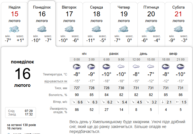 Понеділок, 16 лютого: