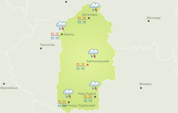 На вулиці помітно "посвіжіло", однак, як прогнозують синоптики - ненадовго. За інформацією Укргідрометцентру, 4 серпня на Хмельниччині очікується до 23-25 градусів вдень. Вночі температура повітря опуститься до позначок 13-15. Можливі короткочасні дощі і шквали.