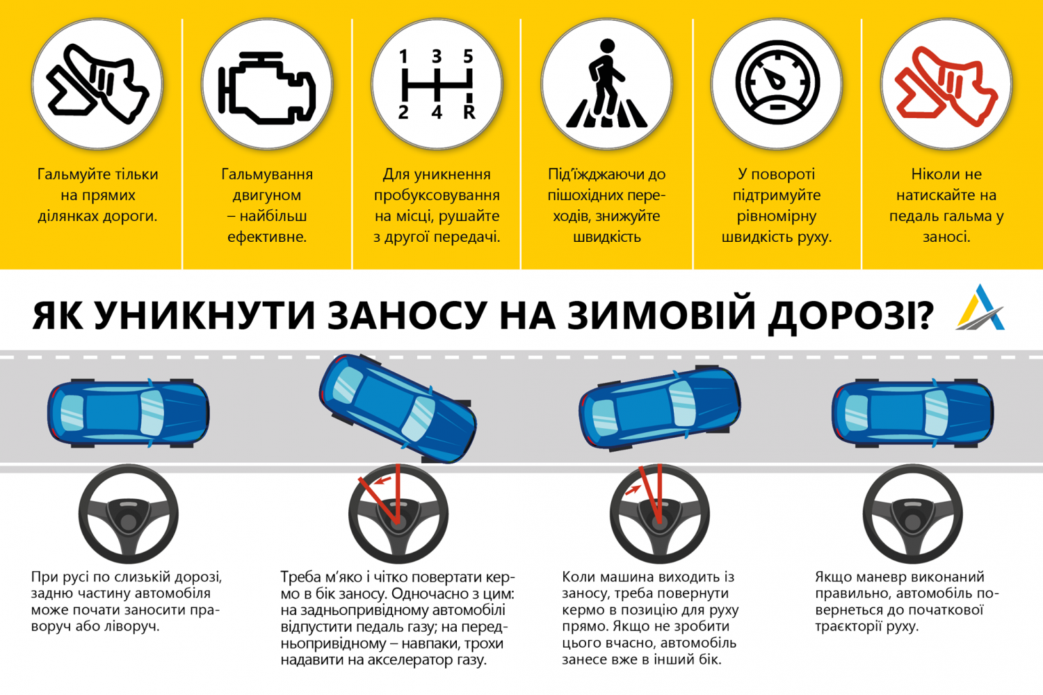 користуватися пасками безпеки, дотримуватись безпечної дистанції, правил маневрування, не перевищувати швидкість, рухатися з увімкненим ближнім світлом фар чи протитуманними ліхтарями