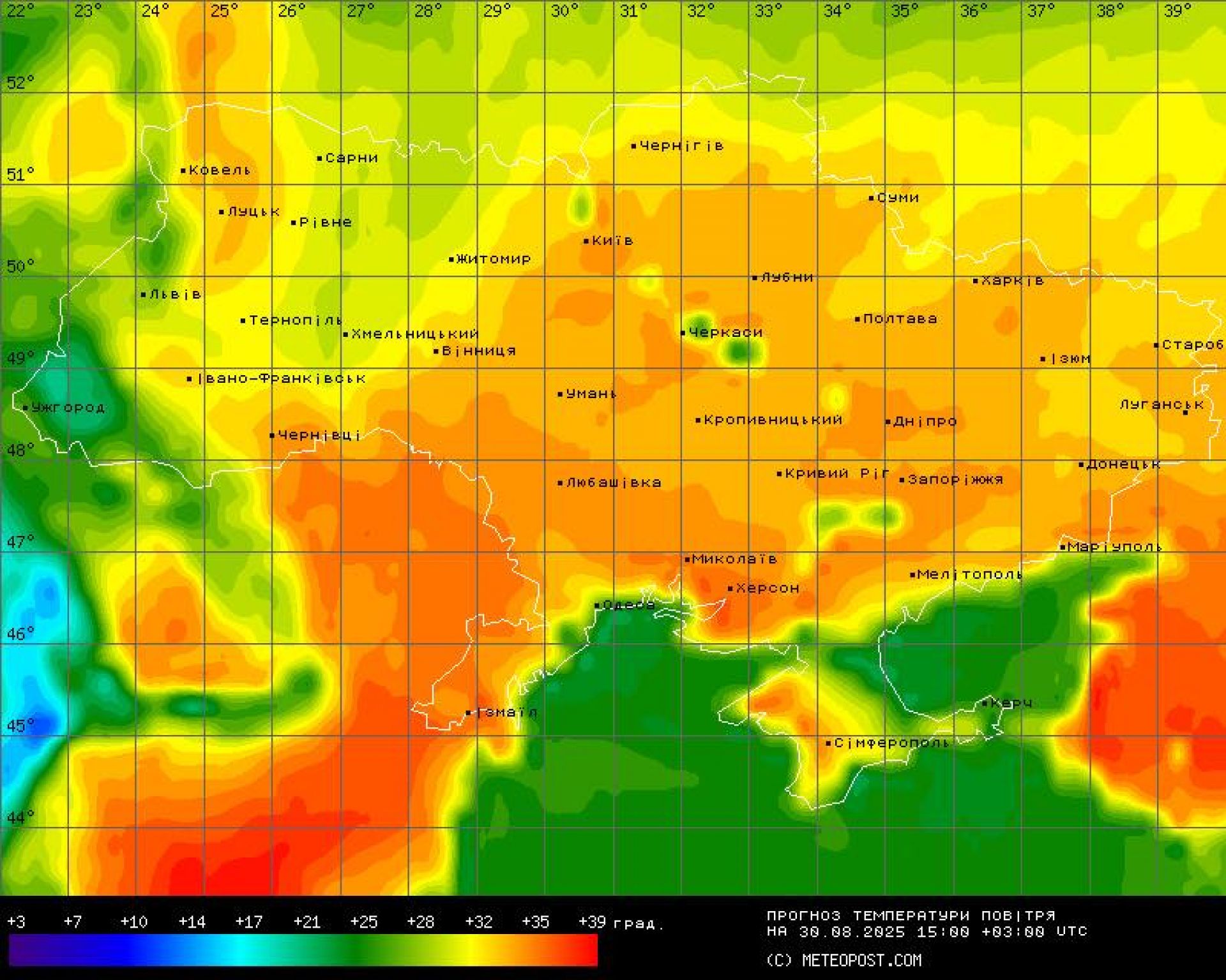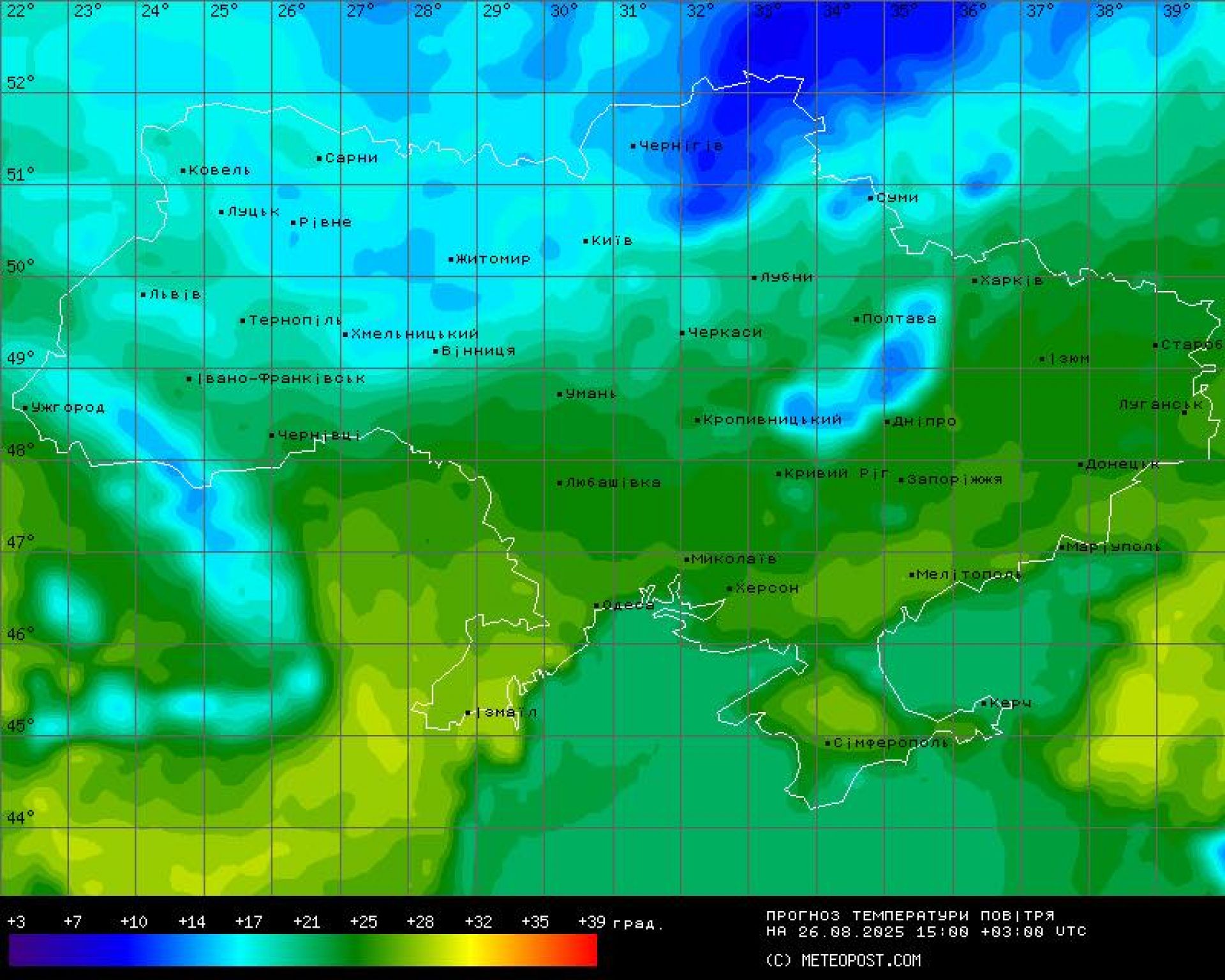 "А щоб ви не мерзли — ось вам порівняльні карти прогнозу температури повітря — на завтра, на 26-те серпня, і на суботу, 30-те серпня. Вивчайте, роздивляйтеся, плануйте", — підсумувала синоптикиня.