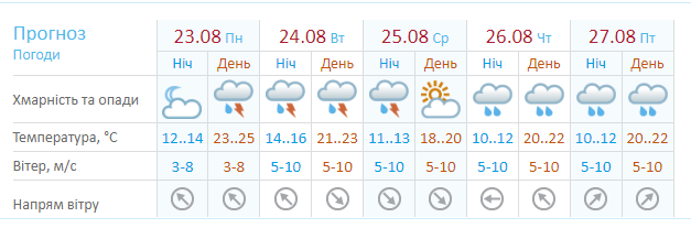 Синоптик Наталія Діденко у своєму прогнозі зазначила: “23-го серпня в західній частині побільшає дощів”.