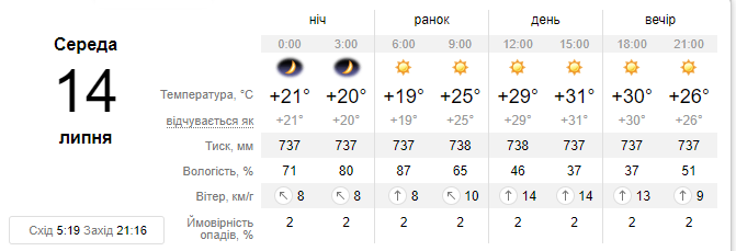 Погода у Хмельницькому на 14 липня. Спека набере обертів