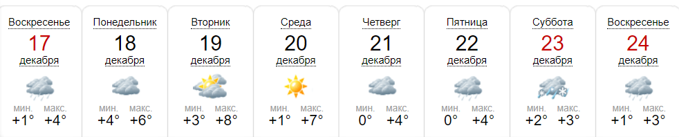 У Хмельницькому та області в неділю, 17 грудня, очікується потепління. Згідно із прогнозом синоптиків, денна температура повітря буде від +1 до +6. Незначні морози очікуються лише вночі. Тоді очкують від -1 до +4.