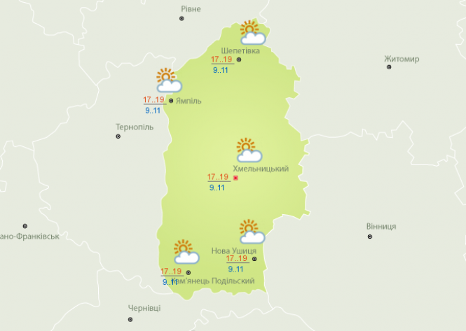 Теплі речі і парасольки можна відкласти до шафи. Дощі відступлять, а погода поступово покращиться. Принаймні так обіцяють синоптики. За прогнозом Укргідрометцентру, 3 червня на Хмельниччині очікується до 17-19 градусів вдень. Вночі температура повітря опуститься до 9-11 градусів вище нуля. Прогнозують хмарну погоду із проясненням, вітер – до 7-12 м/c.