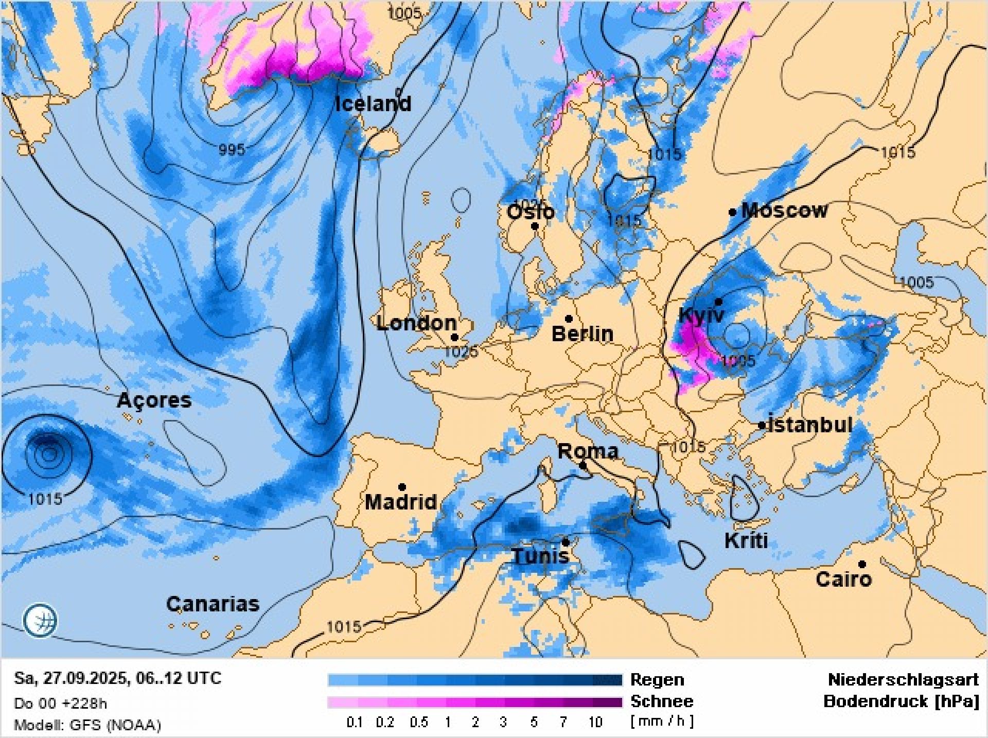 Однак із 25-26 вересня ситуація різко зміниться. За прогнозом, в Україну прийде холодний атмосферний фронт. Температура знизиться по всій країні, а дощі у західних областях можуть переходити у мокрий сніг.