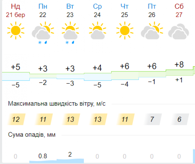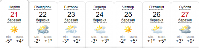 У вівторок, 23 березня, очікується до -5° вночі та до +6° вдень.