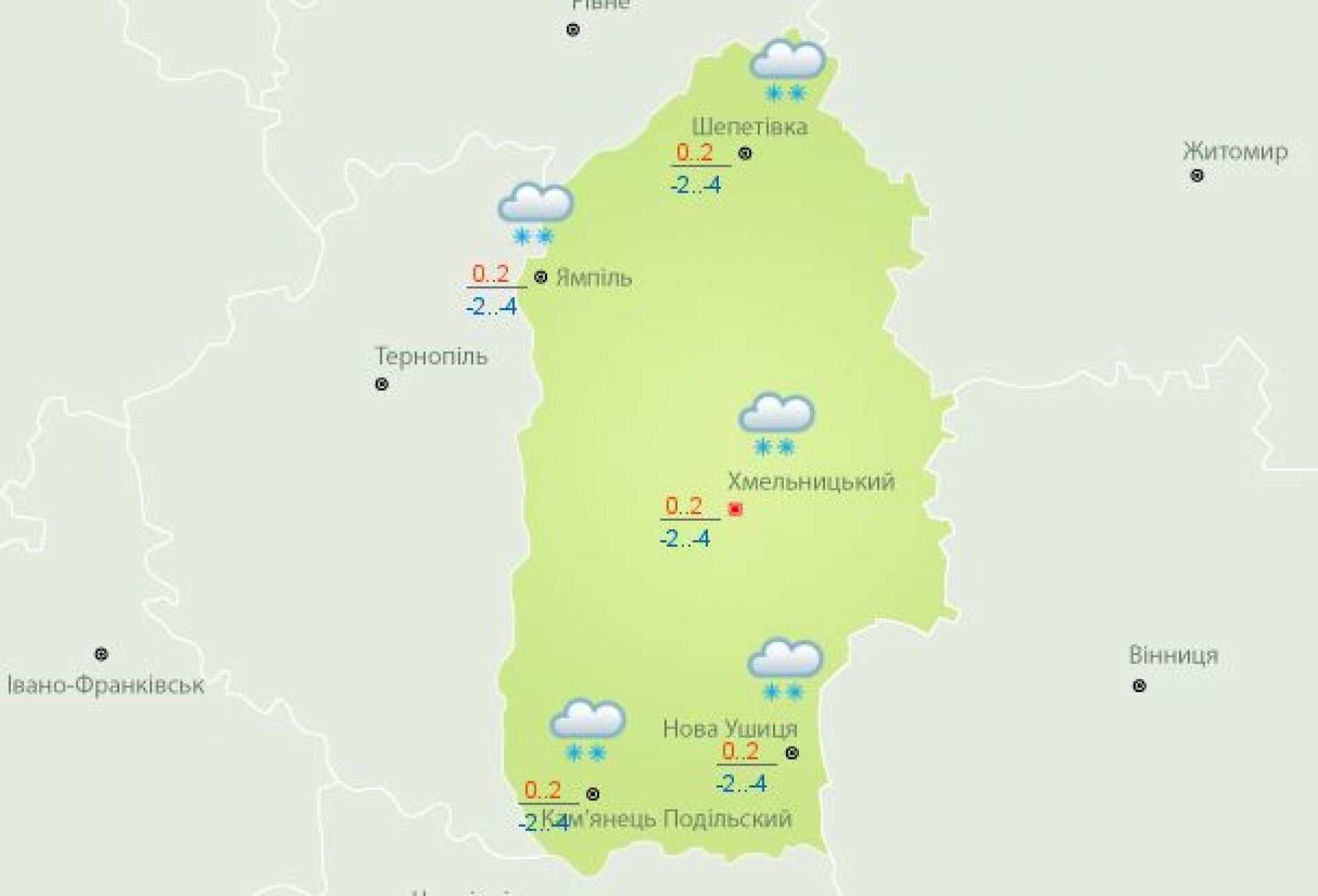 За інформацією Укргідрометцентру, у неділю, 30 січня, на Хмельниччині сніжитиме. Денна температура повітря буде в межах 0-2 градусів. А вночі стовпчик термометра опуститься до 2-4 з позначкою “мінус”. Вітер західний, сягатиме до 15-20 метрів на секунду. Є і метеорологічне попередження: