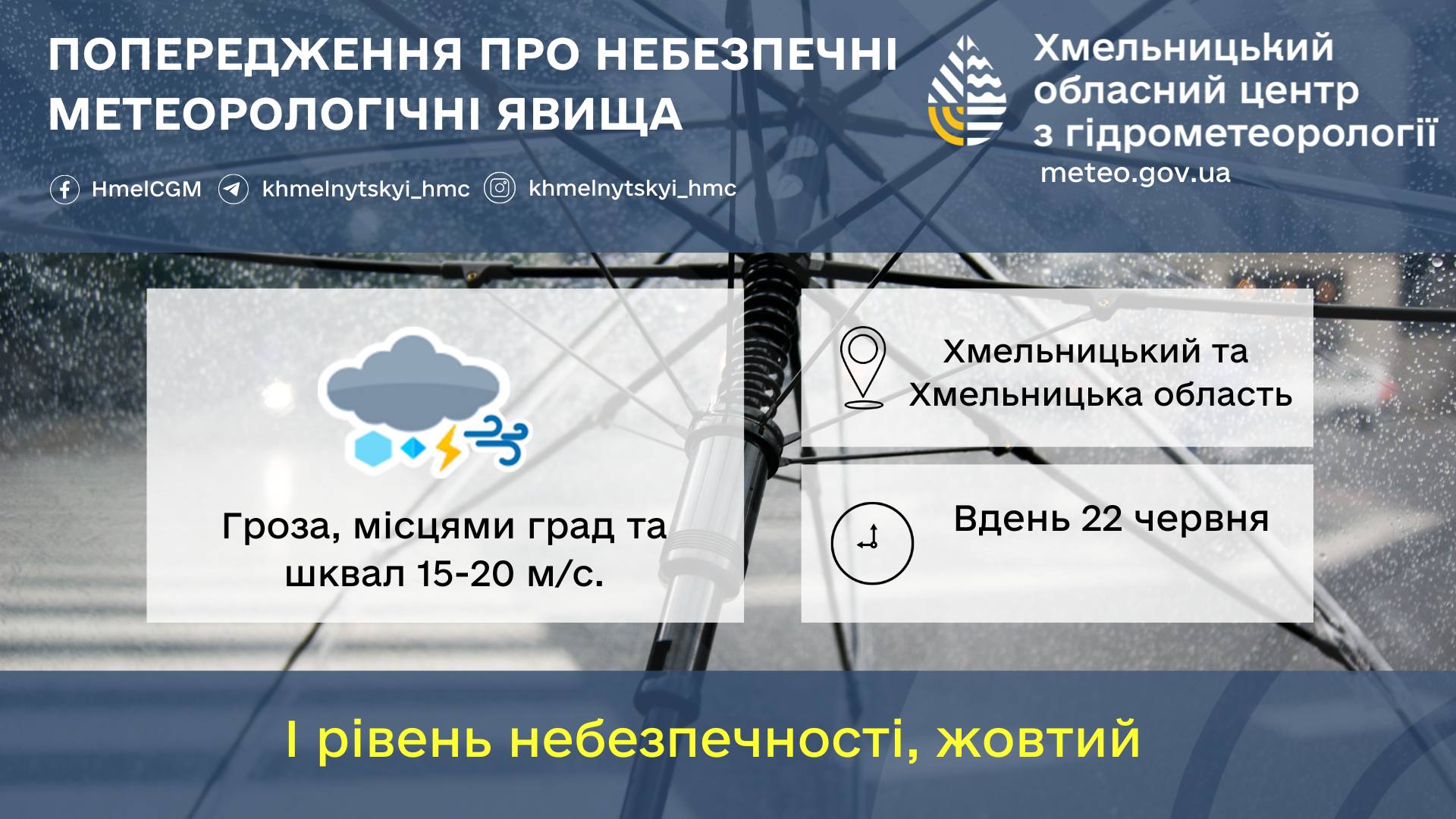 Злива та град: якою буде погода 22 червня на Хмельниччині