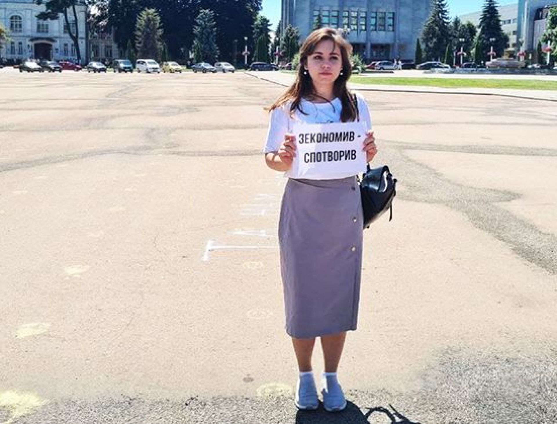 Учасники акції, про яку ми писали вище, зібралися біля пам'ятника "Віра. Надія. Любов", який на розташований посеред майдану. Людей було небагато. Вони стояли із аркушами А4. на яких були наступні фрази: