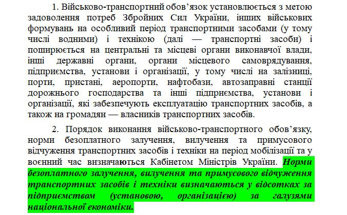 Також в законопроєкті уточнили норму про мобілізацію автомобілів: якщо громадянин володіє двома і більше машинами – одну з них можуть забрати на потреби ЗСУ.