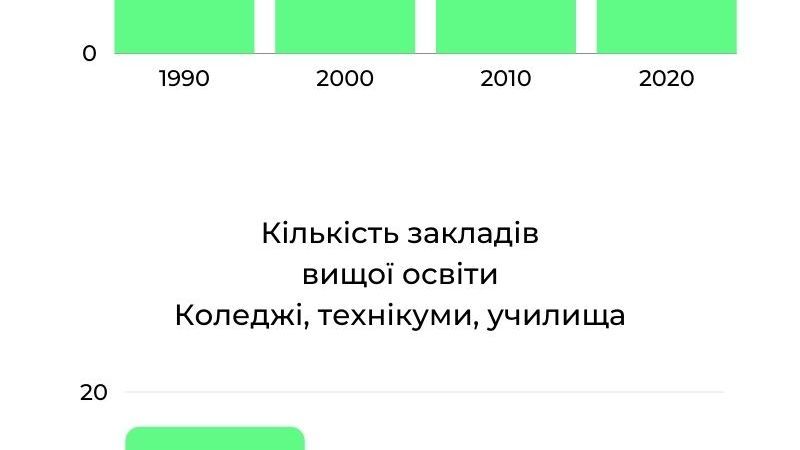 Для порівняння, у 2010-2011 роках кількість університетів і академій на Хмельниччині збільшилася - їх стало 10. Натомість інших закладів, станом на 2020-2021 роки, стало менше. Йдеться про дитячі садки, школи, коледжі й училища.