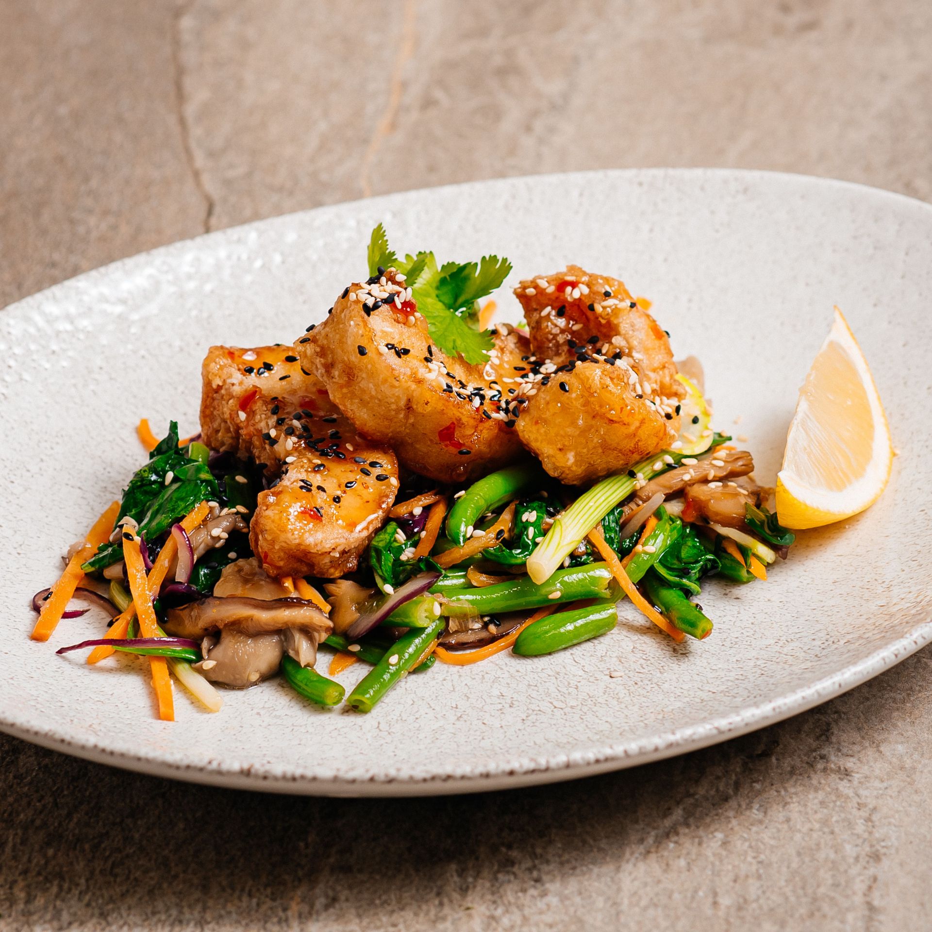 Крутим додатком до атмосфери закладу є велике живе дерево посеред ресторану, що відволікає від метушні торгового центру та надає затишку та комфорту.