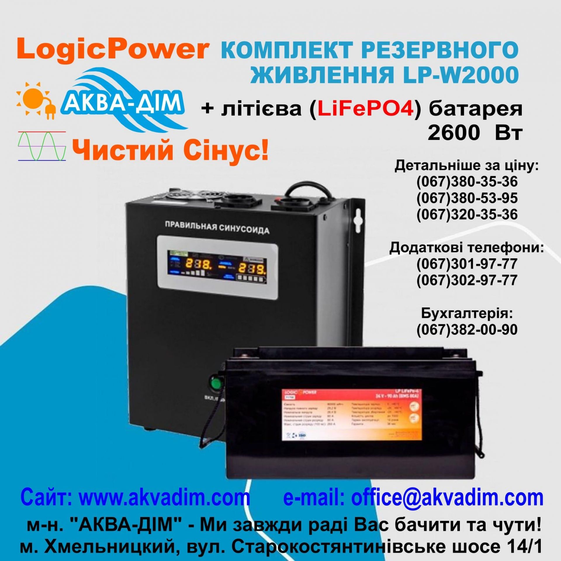 «АКВА-ДІМ», один з найбільших магазинів теплотехніки та сантехніки у Хмельницькому, пропонує своїм покупцям не лише якісну сантехніку та твердопаливні котли, димарі і все що стосується обігріву вашої оселі, а й великий вибір джерел безперебійного живлення.