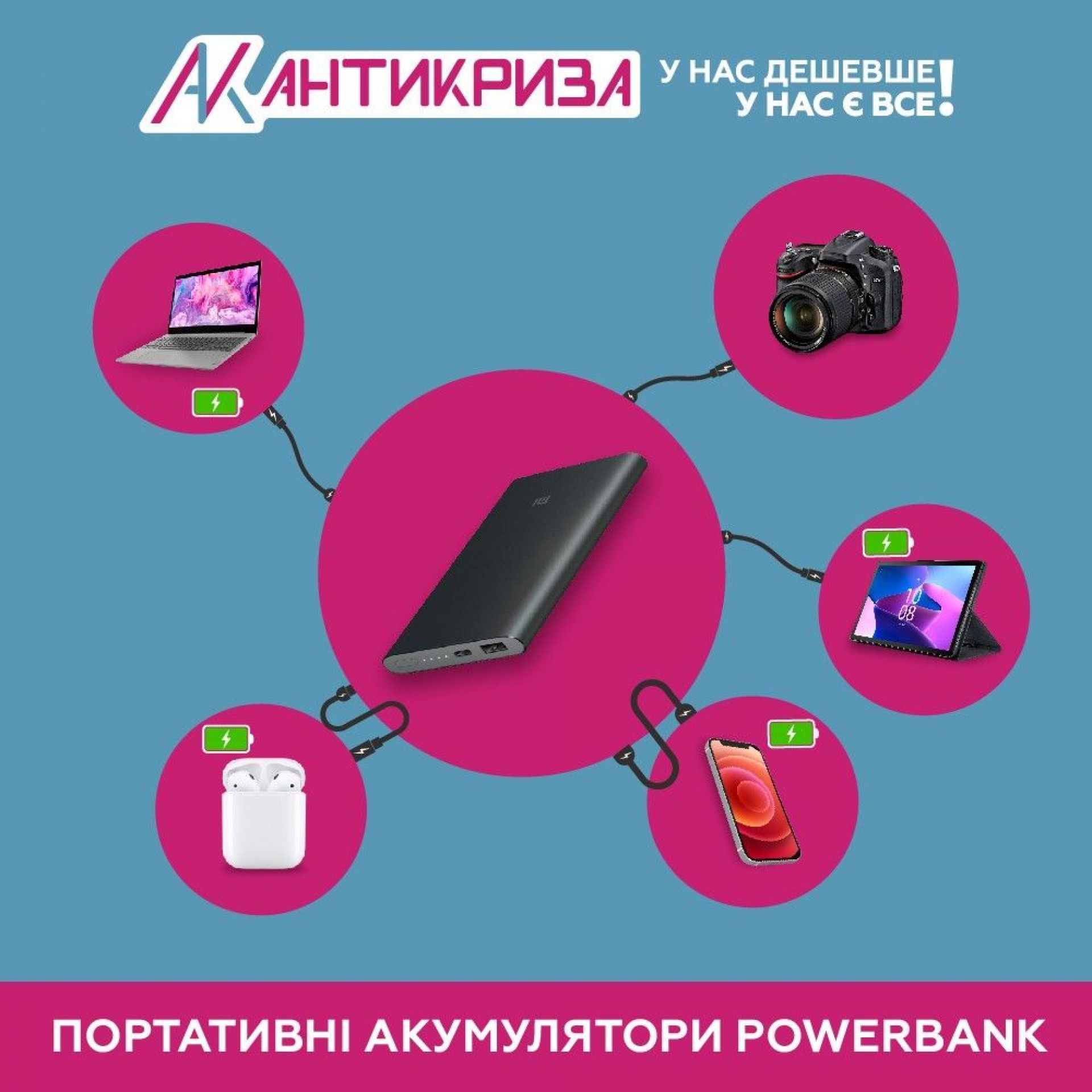 - Портативні акумулятори PowerBank