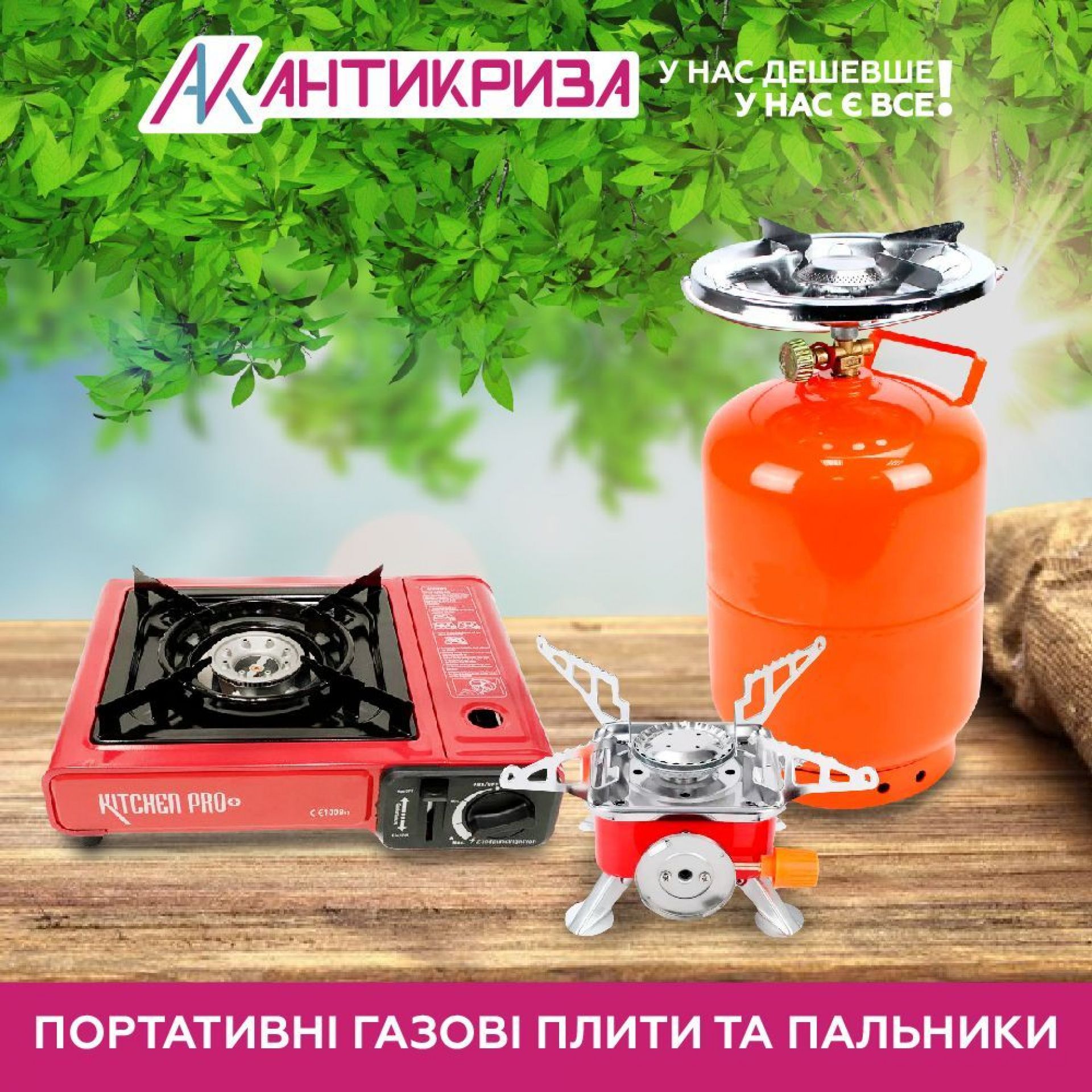 - Портативні газові плити, балони, пальники