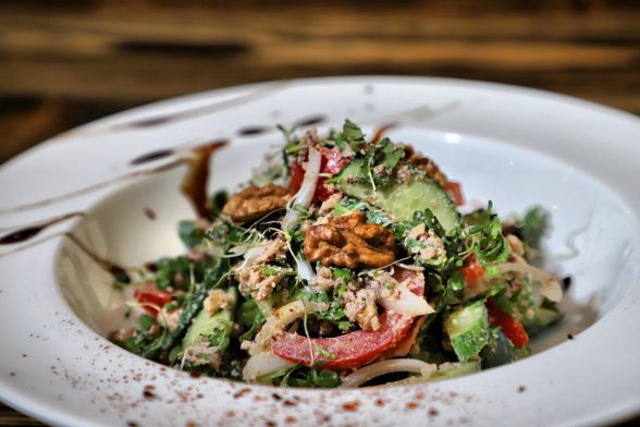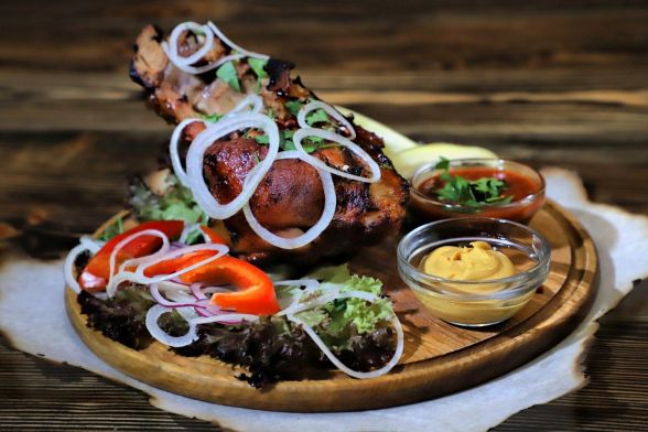 У ресторані ви зможете скуштувати страви автентичної кавказько-української кухні, які тут готують, зокрема, в печі і на мангалі.