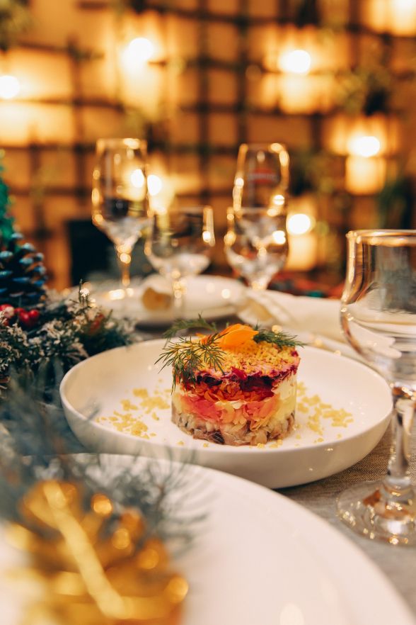 Шеф-повар приємно здивує смачними стравами, приготовленими спеціально до Новорічних свят.